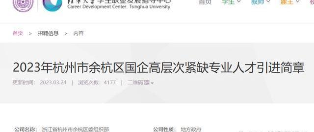 為加強優秀年輕干部人才儲備,余杭區面向國內外部分高校畢業生引進國企高層次緊缺專業人才。