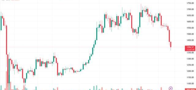 另一方面,以太坊也跌破了1,500美元的價格水平,目前為1,394美元。以太坊的價格在過去一周下跌了10.68%,在過去24小時內下跌了8.74%。