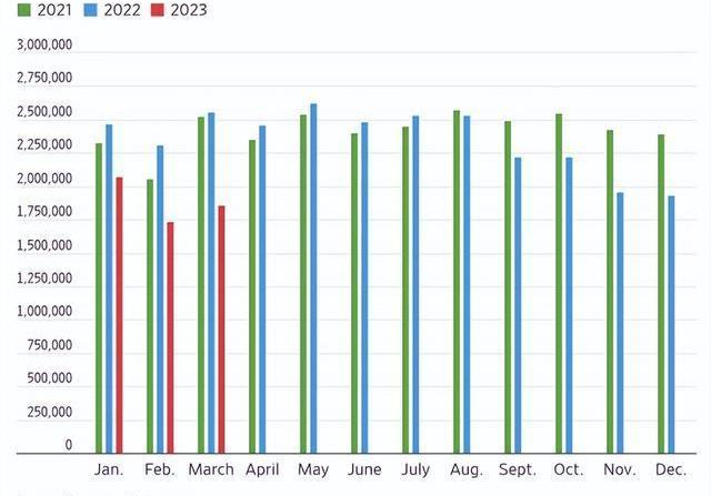 5.美國2023年前三個月的集裝箱進口比去年同期下滑了約23%。