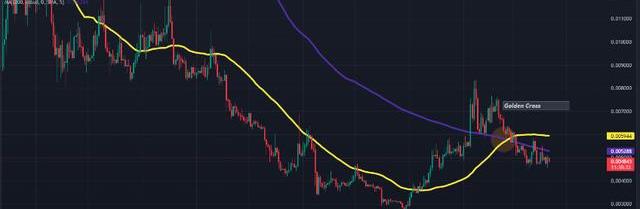 上圖顯示了1天JASMY200天和50天移動平均線(MA)圖表。JASMY處于短期看跌趨勢;在圖表中,因為50天均線在燭臺上方。此外,有一個金十字,但這并沒有像傳統金十字所預期的那樣導致JASMY價格飆升。