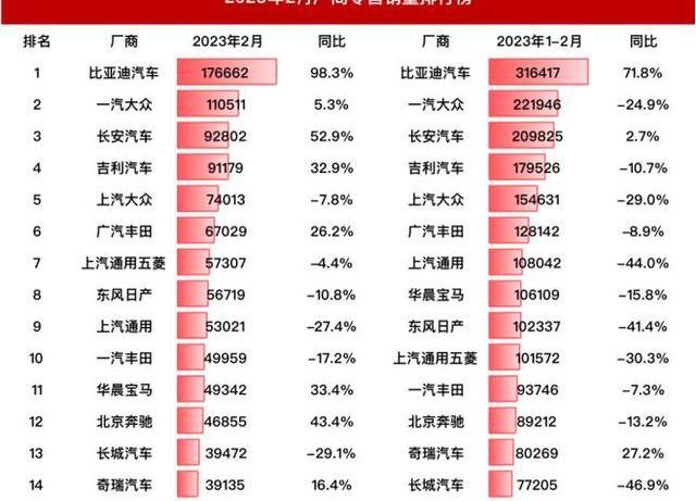 據乘聯會最新數據顯示,2023年國內市場前兩個月的汽車銷量數據相比去年同期下降了19.8%,其中上汽通用、東風日產、廣汽本田的跌幅都超過了40%,南北大眾的跌幅也都超過了20%。