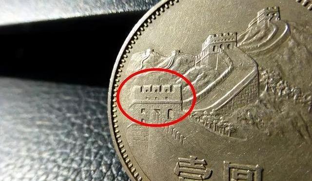 在80年1元的幣面上有一座長城,但是不同版本間,長城的細節是不一樣的。普通的長城幣,左側城垛處是有磚塊。有少量長城1元此處沒有磚塊,被稱為無磚版。
