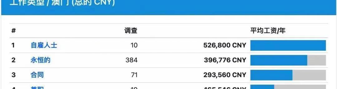 澳門人的平均年薪是375.402元人民幣,服務行業的年薪是13.5萬元人民幣。