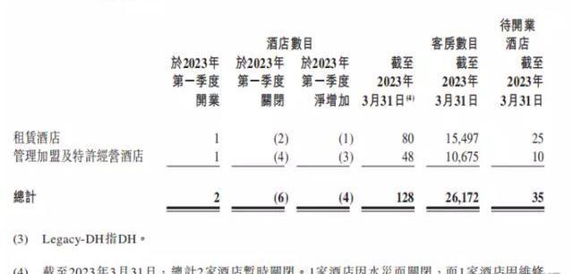 截至2023年3月31日,DH有128家在營酒店,包括80家租賃酒店以及48家管理加盟及特許經營酒店。