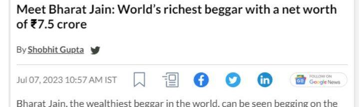 XRP/HKD-0.57%印度男子巴拉特·賈恩是一個非常傳奇的人物,他的故事在全球范圍內引起了廣泛的討論和關注。長期以來,他在印度孟買的街頭乞討,并以驚人的方式成為全球最富有的乞丐,擁有價值7.5千萬盧比,約合人民幣656萬元的巨額財富。