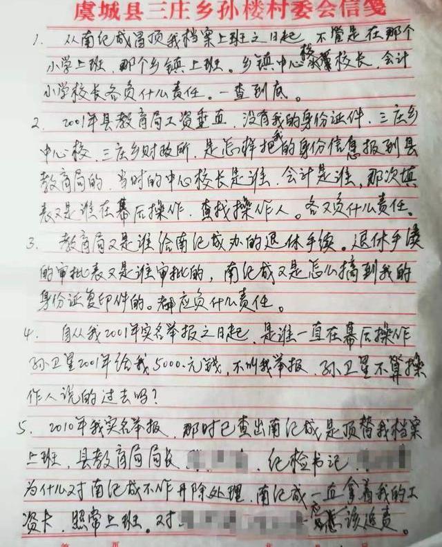 接下來孫存良又走上了自己的維權之路,他開始通過信訪,向市里舉報南紀成、孫衛星二人,以及虞城縣紀委。