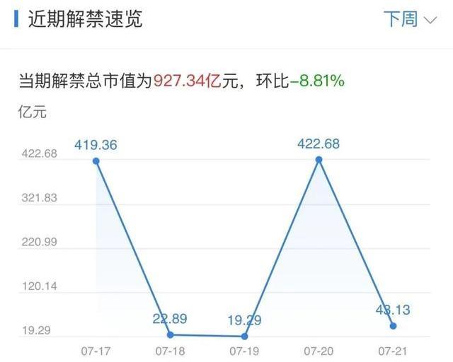 下周有94家公司限售股陸續解禁,當期解禁總市值為927.34億元,環比-8.81%。