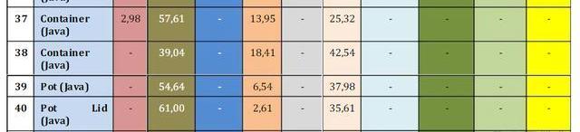 12件北蘇門答臘青銅制品含鉛(Pb),含量為1.22%-15.9%。另一方面,爪哇青銅制品中,35件青銅制品中有7件含有鉛(Pb),含量為1.32%-17.43%