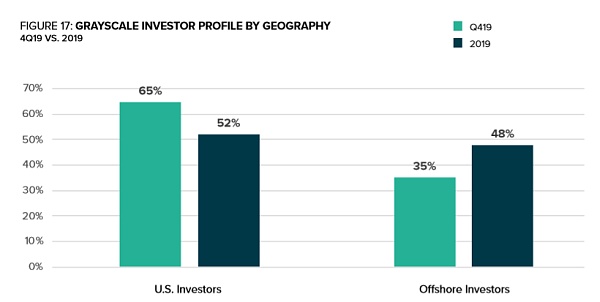 此前,Grayscale董事總經理Michael Sonnenshein在瑞士舉行的Crypto Finance會議中表示,“他們來了,而且規模很大。2019年71%的資產來自機構,我們現在有經驗數據表明,這是更長期趨勢的一部分,我們沒有理由相信這種趨勢不會持續到2020年。”