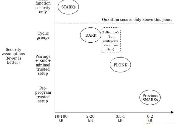 第二點需要注意的是使用零知識證明技術,類似于前面的情況,在每種情況下沒有最佳解決方案,它是證明大小和安全性假設之間的平衡。