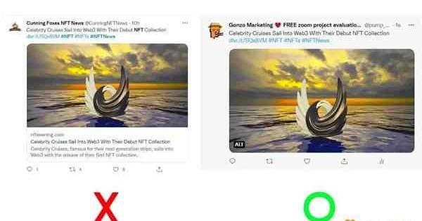 因此,當你在OpenSea上發布一個關于NFT新聞的鏈接,甚至是你自己的NFT時,Twitter會裁剪圖片,使其在feed中不具吸引力。