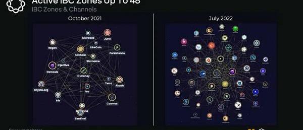 最好的描述是一個可互操作的區塊鏈的生態系統,Cosmos是一個用IBC協議連接的區塊鏈網絡。