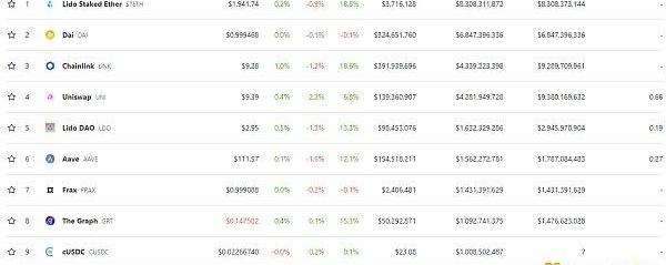 DeFi項目鎖定資產前十排名及鎖倉量數據來源:defillama