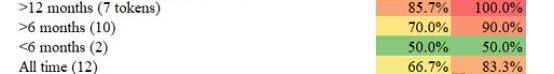 從命中率來看,在列出的所有代幣中,91%在一年多前上市時落后于以太坊,70%落后于比特幣。這些數字同樣會隨著您返回的越遠而變得更糟。