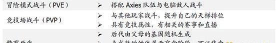 AxieInfinity為基于以太坊的去中心化回合制策略游戲,玩家操控NFT小精靈Axie進行戰斗、繁殖,游戲大部分過程不需要和區塊鏈交互,這保證了對于游戲來說最重要的可玩性。