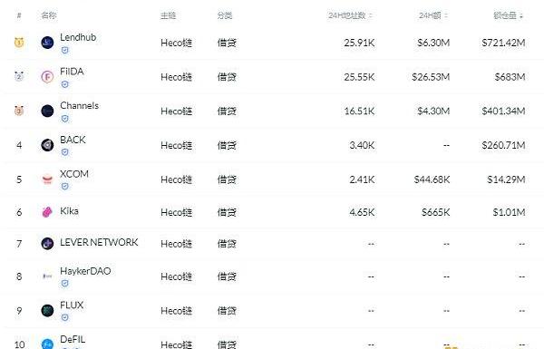 鎖倉量排名前十的借貸平臺排名來源:DeFibox