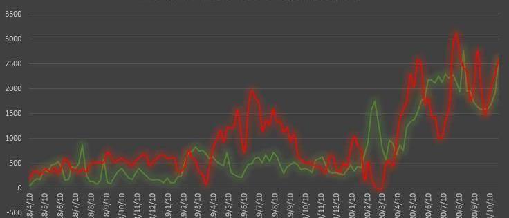 散戶持倉方面,多頭頭寸自3072張上漲至3540張,空頭頭寸自369張同步上升至478張。散戶賬戶此前兩周的連續凈多調倉暫時告一段落,不過考慮到這類賬戶的多頭頭寸創出近10周新高,因此空頭頭寸的小幅增長的「影響」有限。