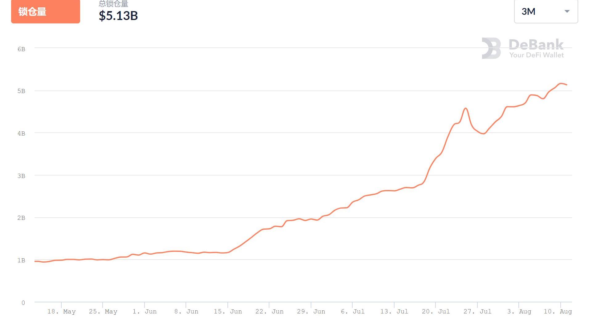 DeFi發展迅速,鎖倉金額從4月的7億美金,到現在變成50多億美金,3個多月實現了7倍漲幅。