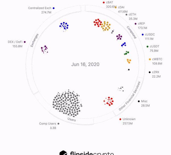 許多DeFi協議正試圖通過用治理代幣激勵用戶的方式來引導他們的網絡效應。這種策略被稱為流動性挖礦,Compound是最有名的例子之一,它在6月底推出了治理代幣COMP。