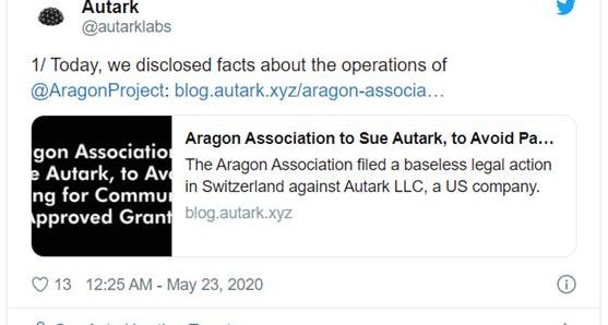 現在這個問題已經公開了,社區成員呼吁使用ANJ持有人作為爭端解決的代理,在Aragon法院直接解決與Autark有關的問題。