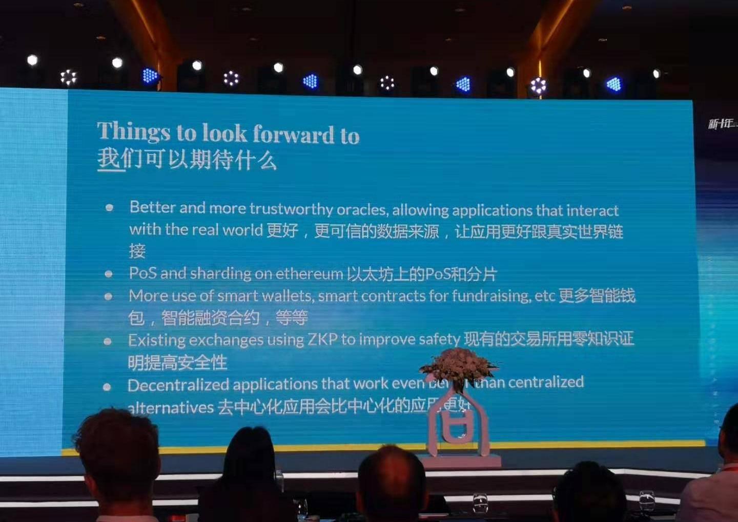 智能錢包越來越流行,希望兩年之后每個人用以太坊的時候,都是通過智能合約的錢包,來用以太坊,這樣更安全,比單一的密鑰更安全。還有智能合約用在融資和其他用例上,還有以太坊的PoS和分片,還有去中心化的交易所,現有交易所用零知識證明提高安全性,去中心化應用會比中心化的應用更好。