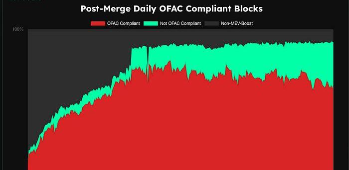 絕大部分Relay還是遵從OFAC,來源mevWatch.info