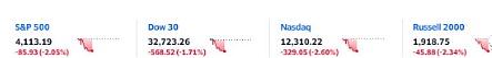 但鷹派發言還是令周五的金融市場風險情緒迅速降溫,道指聞訊在盤初跌超200點,納指跌幅擴大至1%。隨后美股一度跌幅砍半,但隨即重新擴大,到講話結束的一個半小時,道指跌近570點或跌1.7%,標普500指數、納指和羅素小盤股均跌超2%,納指跌超320點且跌幅最深。
