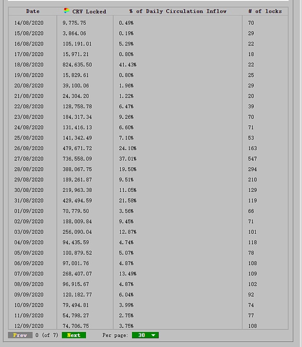 這是最近鎖倉Crv(變成veCRV)的數據。下面是我自己整理的表格: